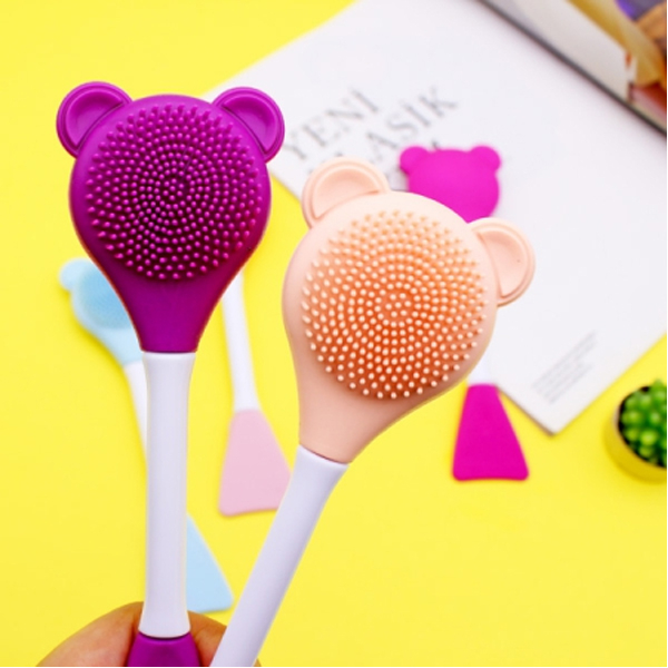 براش ماسک زنی و فیس براش طرح خرسی دارای هر دو سر سلیکونی و دسته پلاستیکی میباشد که یک سر آن مناسب برای ماسک زدن روی پوست و سر دیگر آن جهت شستشو و ماساژ کاربرد دارد. هر دو سر براحتی قابل شستشو هستند و دارای رنگهای سرخابی، بنفش، گلبهی ، صورتی و آبی میباشند.