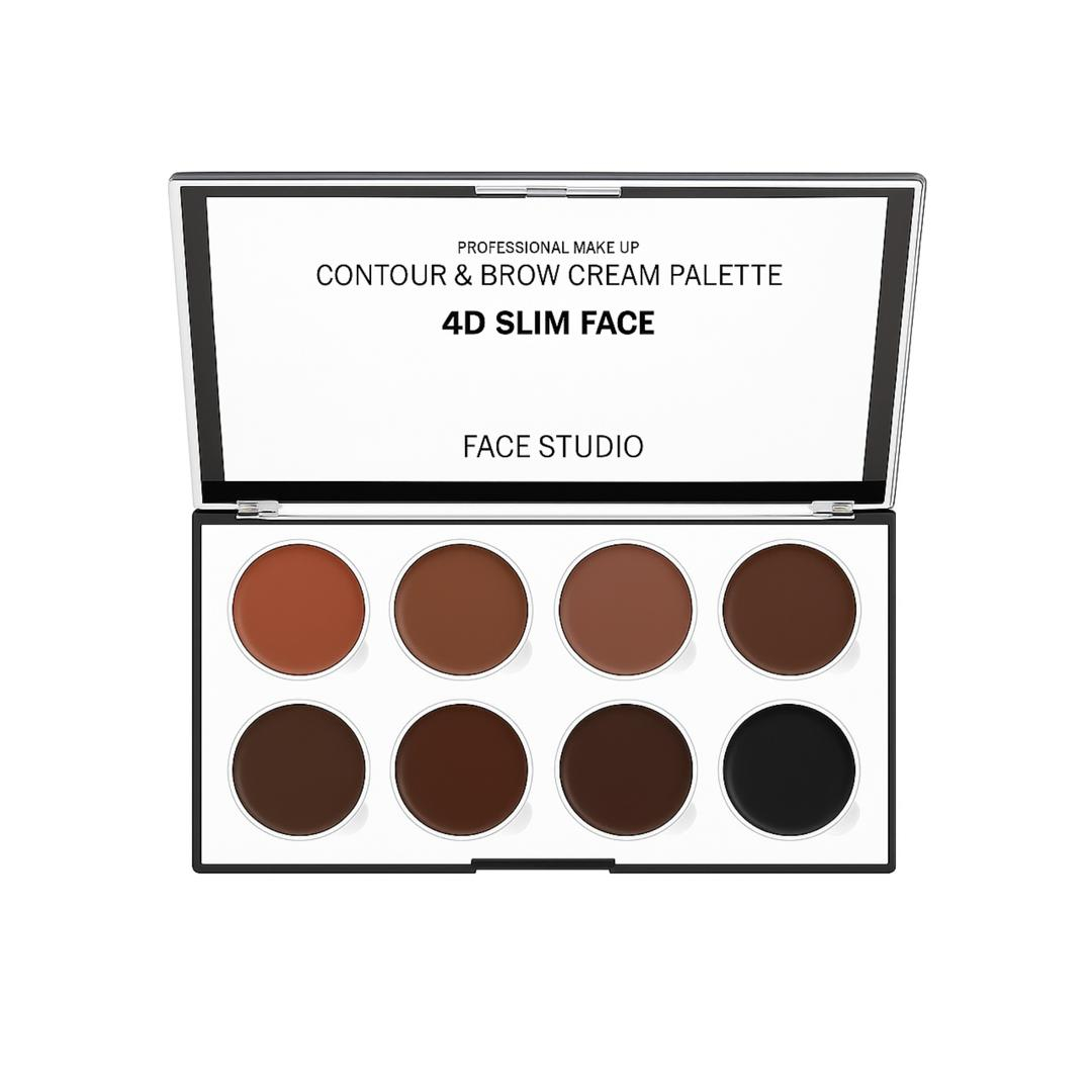پالت کانتور و هایلایتر فیس استدیو مدل 4D Slim Face دارای هشت رنگ که در آن یک رنگ براق و یک‌ رنگ ‌نیمه براق و 6 رنگ کاملا مات بوده و گزینه مناسبی برای کانتورینگ صورت است. این پالت شامل تمامی رنگهایی است که با کمک آن می‌توانید به آرایش خود بُعد ببخشید.