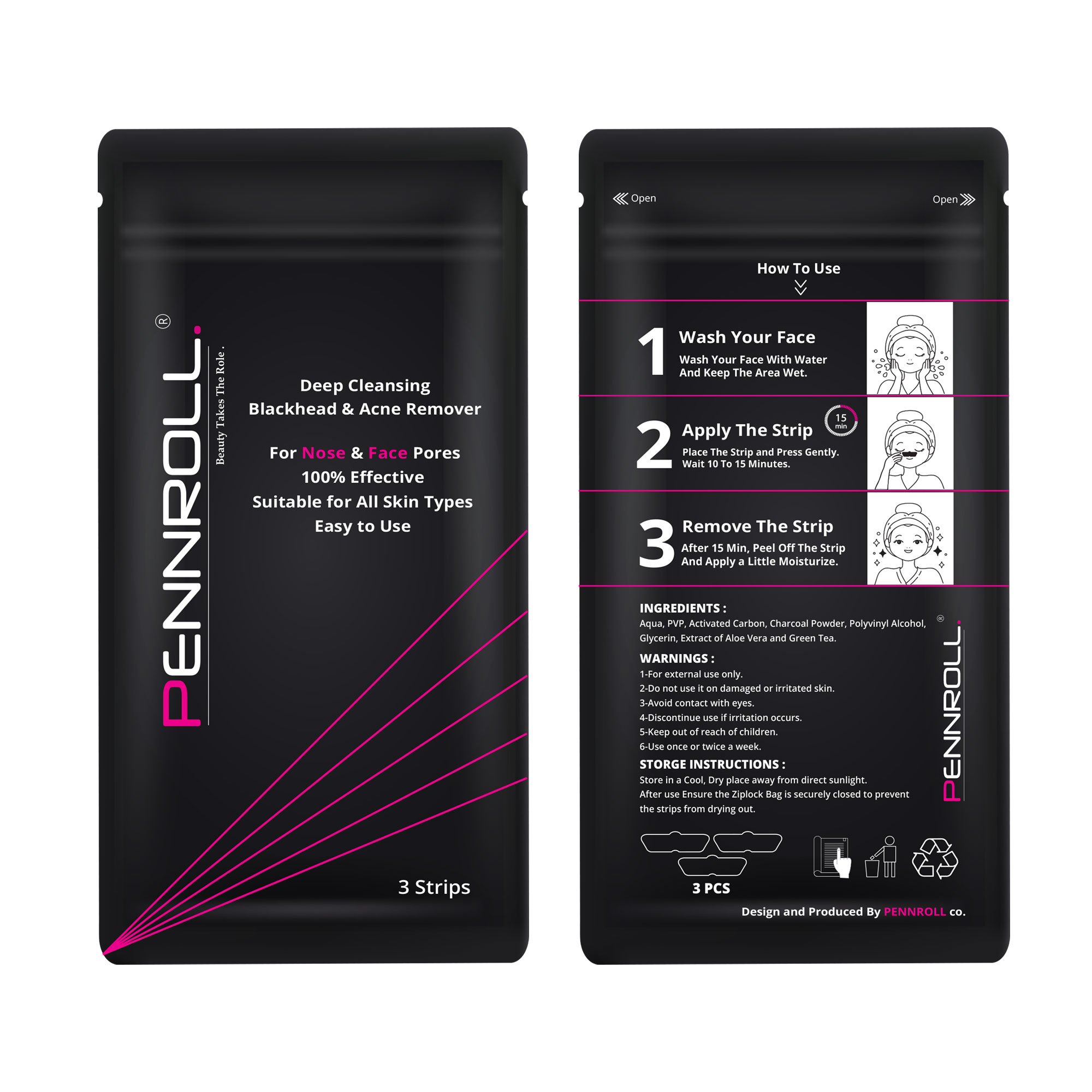 چسب بینی پاک‌ کننده منافذ پوست پنرول حاوی پودر زغال وعصاره طبیعی چوب بامبو وعصاره روغن چای سبز، جوش‌های سرسیاه و چربی اضافه رو به‌ آرامی از بین میبرد چسب بینی و ضد آکنه پنرول در بسته بندی کاملا استریل شده عرضه میشود که بعد از استفاده هم میتوانید با بستن زیپ کیپ آن را برای استفاده های بعدی تمیز استریل بدور از آلودگی نگه دارید
